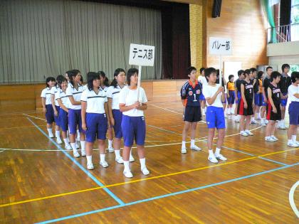 それぞれの部活動へ1・2年生からエールを送り、部長からは中体連へ向けての抱負が述べられました。