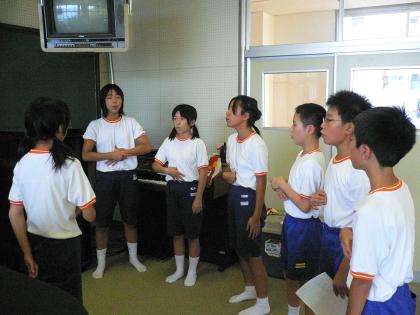 1年生は3年生の合唱を聴いて勉強をしていました。