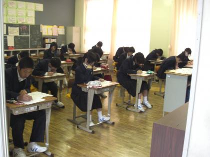 3年生は、第2回学力診断調査テストを行っております。全員が真剣に取り組んでいます。