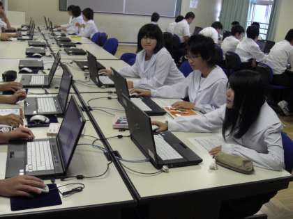 3年生は、「沼津を英語で紹介しよう」というテーマで活動しています。今日は、パソコン室を使って調べ学習をしました。