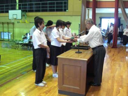 合唱コンクールの表彰を行いました。3年A組の「COSMOS」が最優秀賞に輝きました。3年B組、2年A組2が優秀賞でした。どのクラスも本当に素晴らしい合唱でした。
