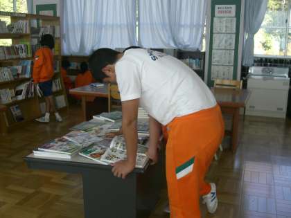 昼休みには、情報委員が担当して図書室開放を行っています。生徒には、良書と出会い、心を豊かにしてほしいと願っています。