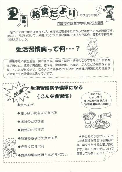 先日、「給食だより」を配布しました。