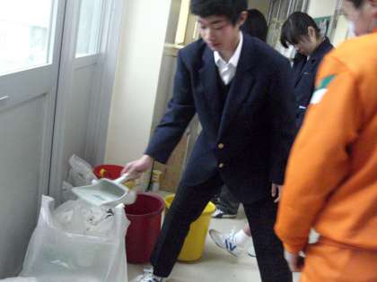 健康委員会の生徒が、クラスのゴミを回収して、それを一つにまとめる作業を行っていました。