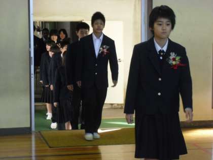 3年生が入場しました。真剣な表情で式がスタートしました。