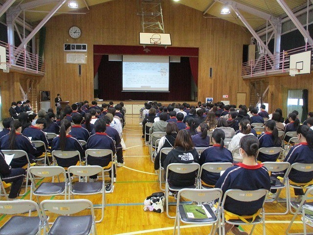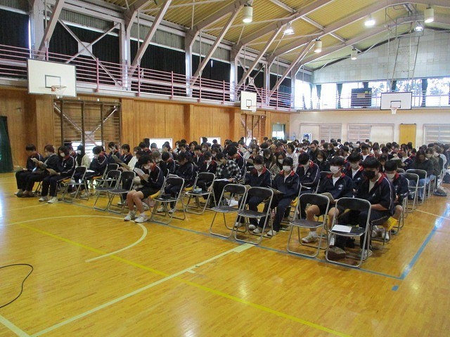 3年生の進路説明会を行い、進路決定に向けてや私立高校入試や公立高校入試について3年部の職員から説明しました。多くの保護者の皆様に参加いただきました。