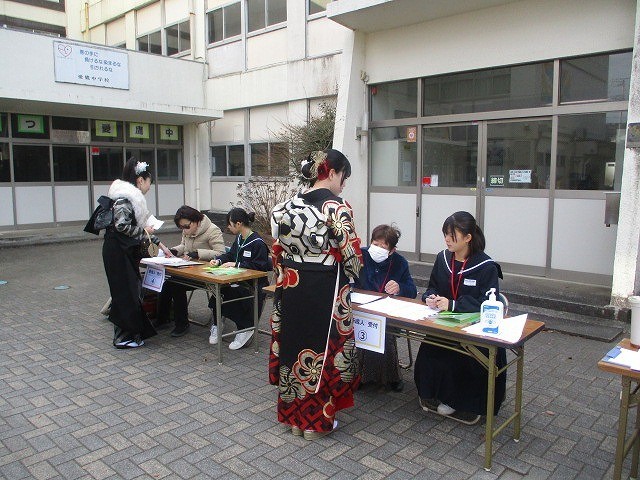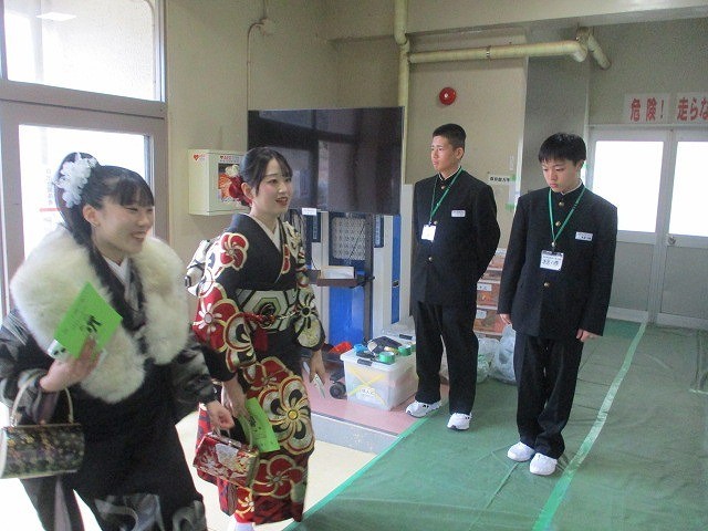 愛鷹地区二十歳の集いが体育館で行われました。2年生の生徒8名が受付や案内係として参加しました。