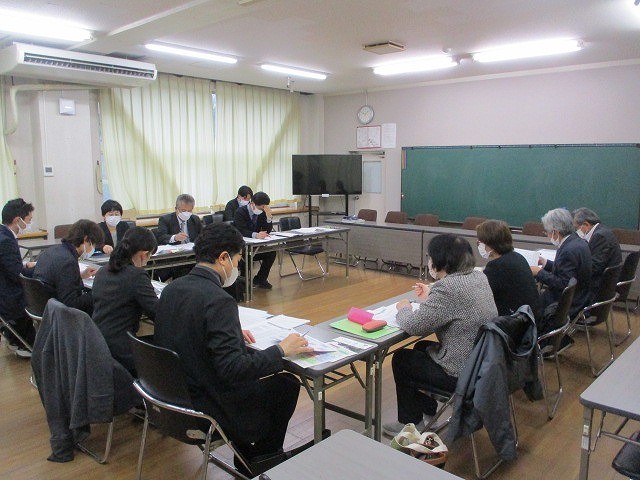全体会では、小中それぞれの学校評価アンケートの結果やその対策、来年度の取り組みなどについて協議しました。