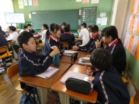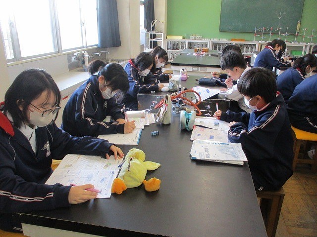 (地層のでき方、火山の成り立ちなど)学習内容の振り返りをしています