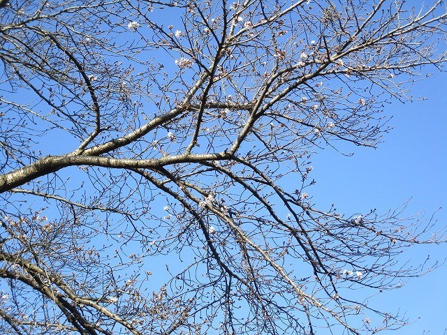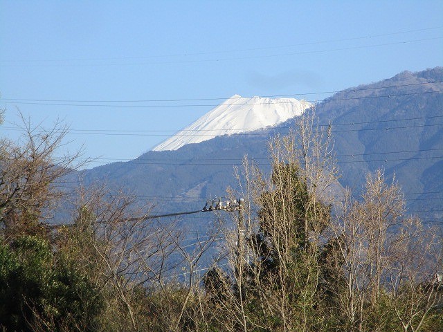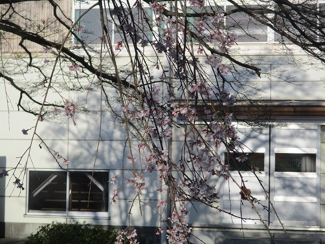 富士山頂がきれいに見えます。三春の滝桜も開花が進み、体育館西の桜も開花しました。