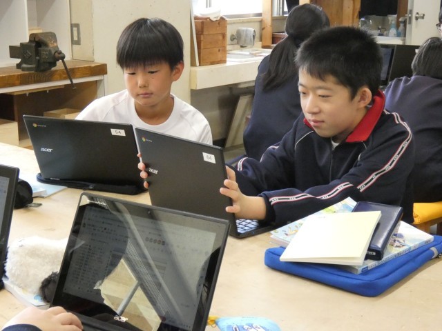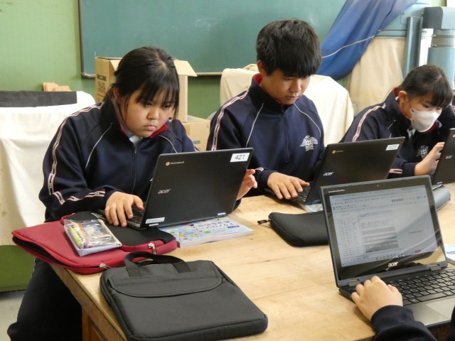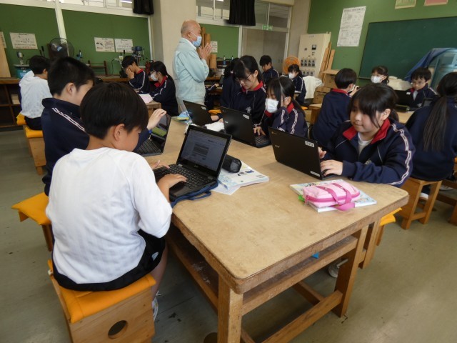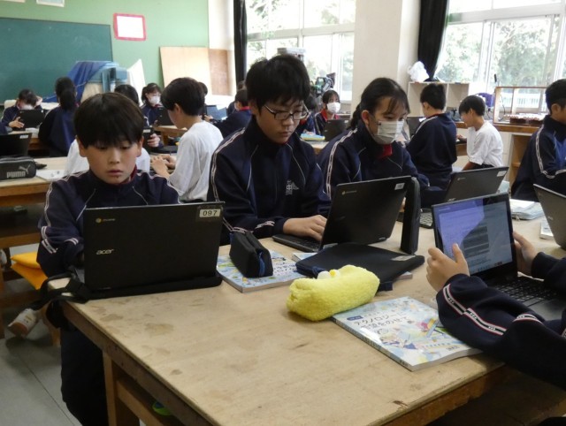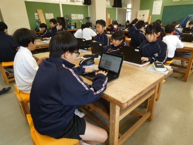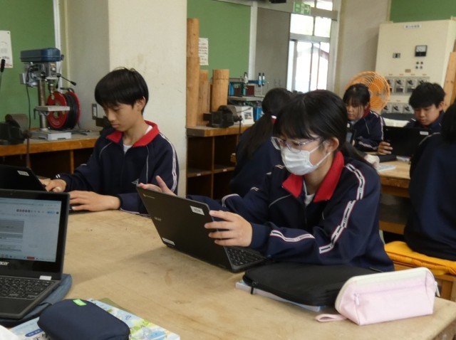 1年C組の技術の授業の様子です。ガイダンスの初めにPCを使って自己紹介をしていました。