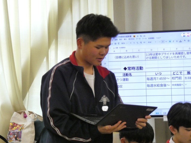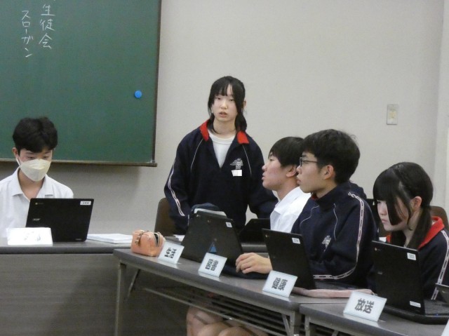 今日は中央委員会がありました。生徒会本部役員・専門委員長・学級委員長が集まり、前期と1Sの専門委員会・学年委員会活動について話し合いが行われています。