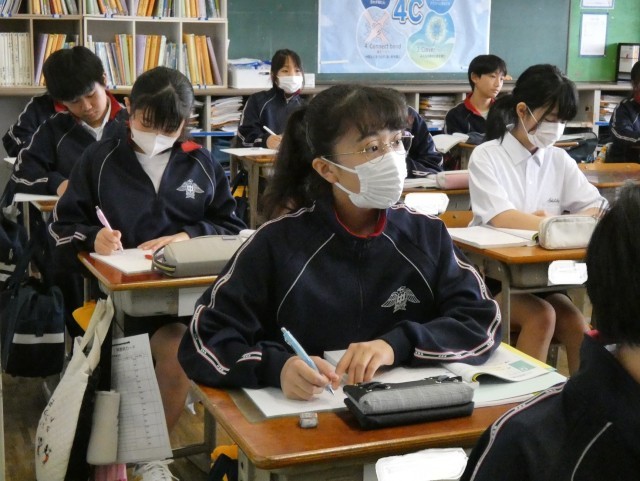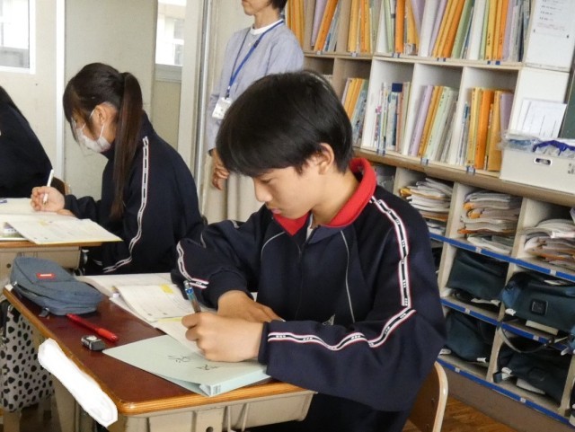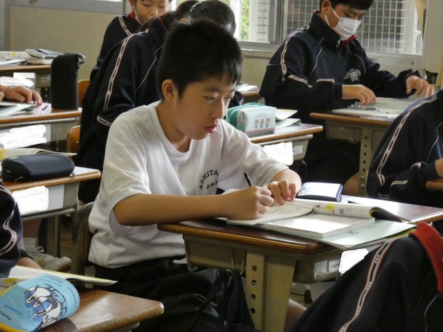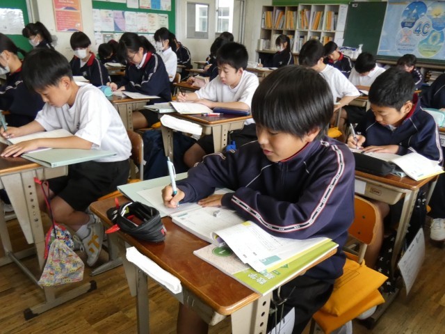 1年C組の数学の授業の様子です。負の数の計算が始まっています。