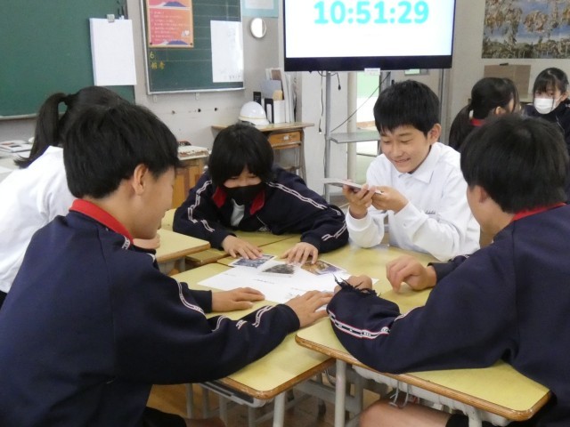 2年A組の美術「アートカード」の授業の様子です。
