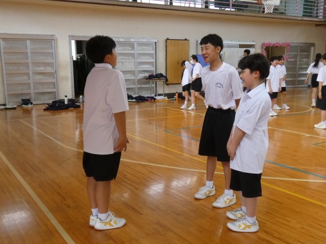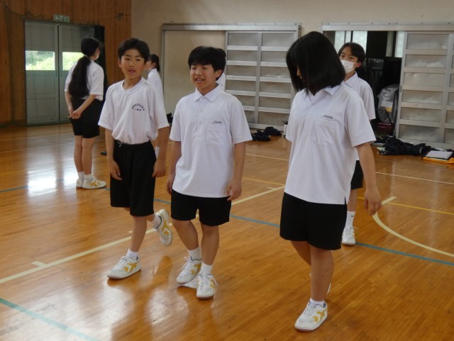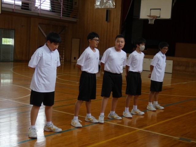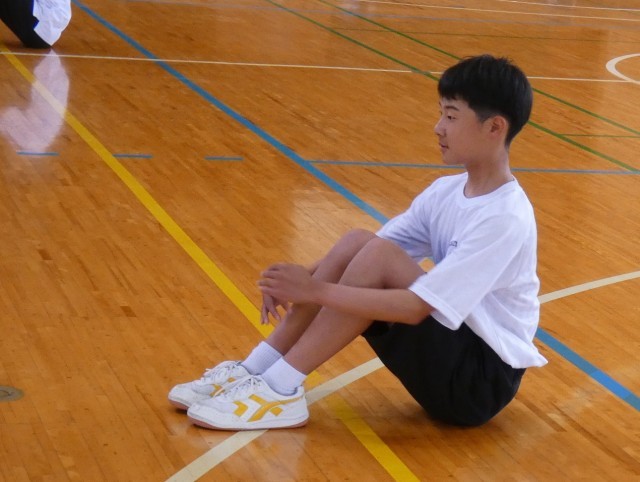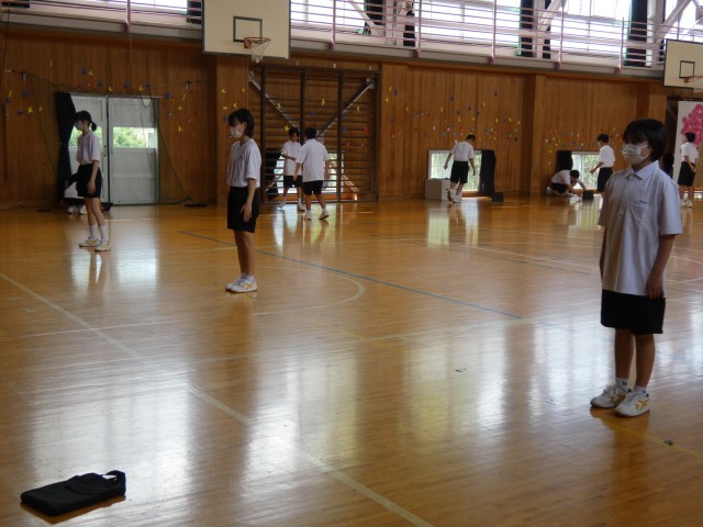 1年B組の保健体育「集団行動」の様子です。今日はテストです。