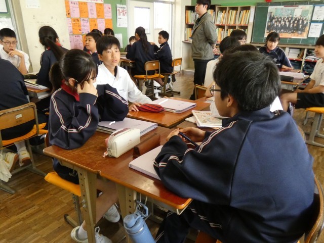 1年A組の英語の授業の様子です。数字の英語表現をゲームをしながら学習しています。