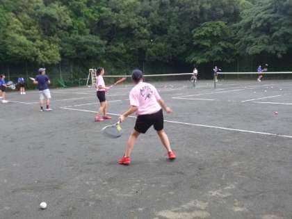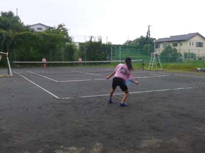 昨日の練習試合が雨で流れましたが、愛中テニスコートでは、女テニが元気よく最終調整に入っています。