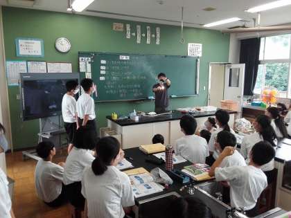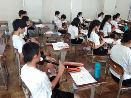第2校時の授業の様子です。蝉の鳴き声が聞こえる暑い中、集中して授業に取り組む姿が印象的でした。