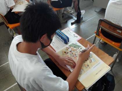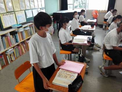 第4校時の道徳の授業の様子です。蝉の鳴き声が聞こえる暑い中、集中して授業に取り組む姿が印象的でした。