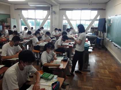 本日をもって学校再開日より、行っていた、3学年分散教室も終了。分散教室ともお別れです。最後の授業は期末テスト前と言うこともあり、授業の様子はいろいろでしたが、お世話になった教室に感謝の気持ちをもち、しっかりお別れをして移動します。