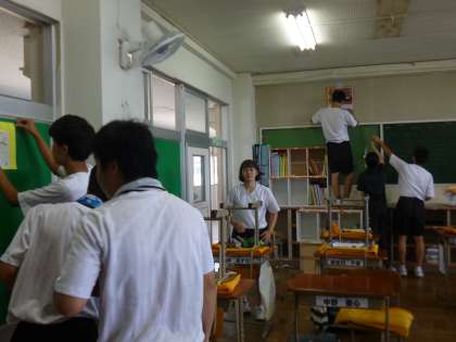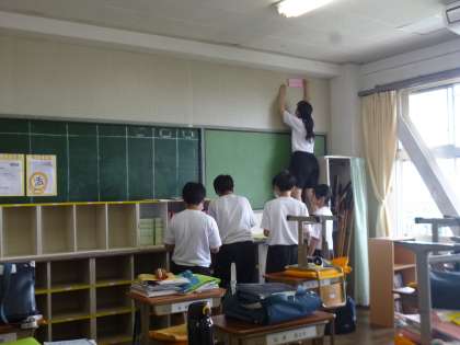 みんなで協力して、どんどん動き、働き、移動とこれから生活する教室を完成させていきます。