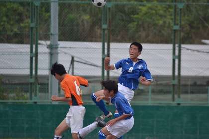 サッカー部は、静裏小中一貫学校・第四中の合同チームと対戦しています。