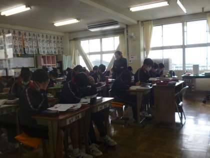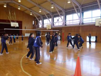 2Dの保体は、体育館で行っています。今日は冷たい風が、グランドを吹き抜けています。