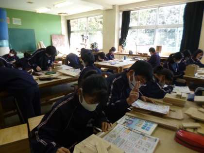 あらかじめ示された手順と教科担任の確認、そしてグループでの協力にも助けられながら、個々の作業が進んでいきます。