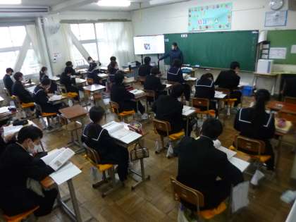 3Cは、公民で「働く」ことについて、前の時間からのつながりの学習を進めています。単元を通して、何を学ぶかが明確で、一人一人の学びにめあてが感じられます。