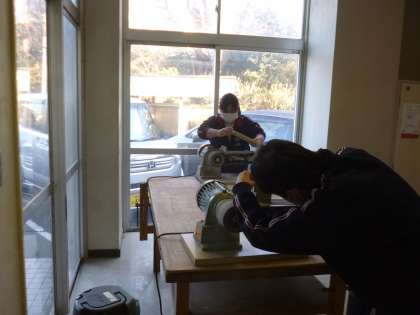 1時間目の1Aは、技術で木材加工の続きを行っています。