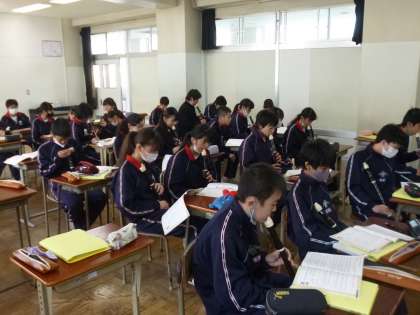 1Bの音楽は、アルトリコーダーで「聖者の行進」の練習を行っています。