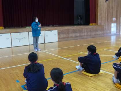 5時間目終了後、体育館にて1年生が高柳先生への感謝の会を開きました。