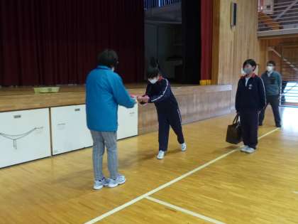 5時間目終了後、体育館にて1年生が高柳先生への感謝の会を開きました。