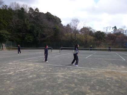 テニスコートとグランドを使い、時間で区切って交代する方法を取っています。