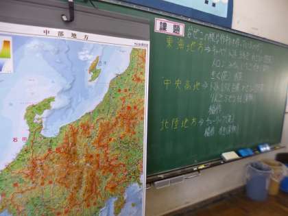 2Cは社会で、中部地方の農業について学んでいます。