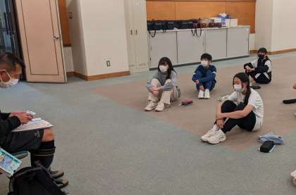 実行委員会で1日目をふり返りました。今よりも3K(気づき、考え、行動)ができるようになるには…。今日よりも明日、明日よりも明後日、ふり返りを仲間に反映させていきたい。本当にみんなを笑顔にするには、自分に‘挑戦’することが欠かせない!?など、先生と実行委員とで意見交換をしました。