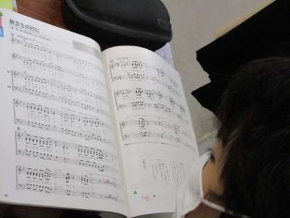 模範のCDから流れる合唱を、楽譜を目で追いながら聴いています。