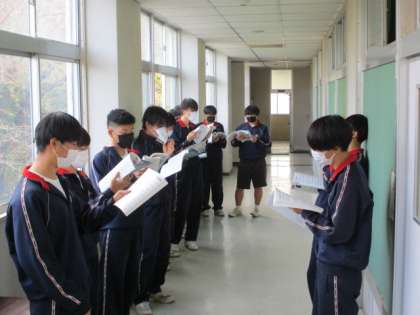 3Aは、音楽で「旅立ちの日に」のパート練習を行っています。