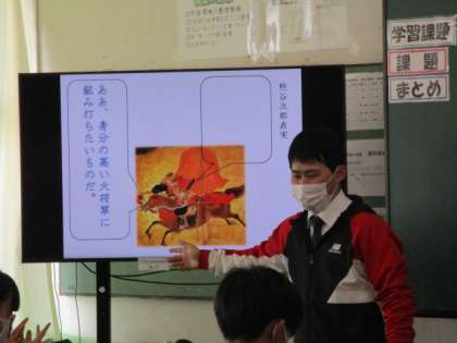 2Cの国語は、「敦盛の最期」登場人物の心情に迫っていきます。