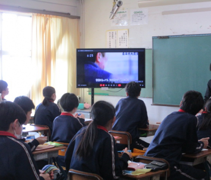 昼の放送で、生徒会長より、気仙沼市立階上中の答辞の動画を流しながら、自分たちには何ができるかの問いかけがありました。