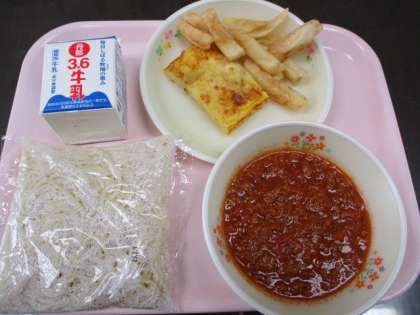 3月9日 今日の給食 公開日 2023/03/09 更新日 2023/03/09 学校の紹介 今日のメニューです。 ・ソフトメンミートソース・アンサンブルエッグ・牛乳・フライドポテト いただきます。 いいね(0)