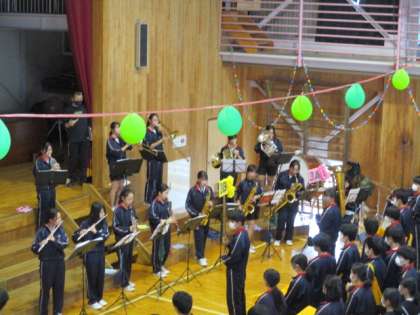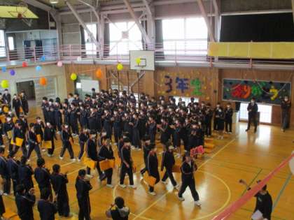 吹奏楽部の演奏で3年生が入場します。