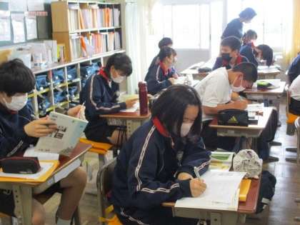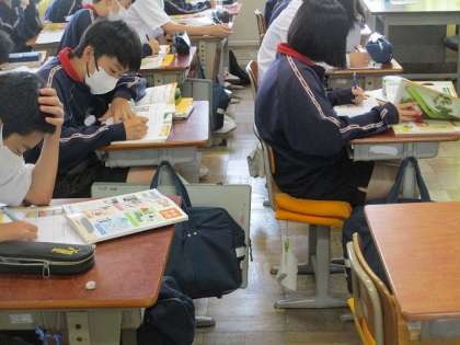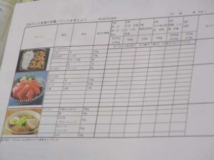 1日のメニューの例を見て、栄養バランスの観点から問題点を見つけています。