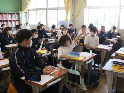 期末テストに向けて、学習計画の立て方や学習方法について説明を聞いています。
