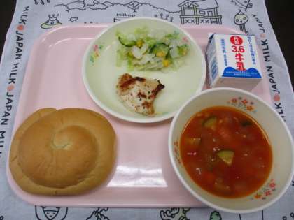 6月6日(火) 今日の給食 公開日 2023/06/06 更新日 2023/06/06 今日の給食 今日のメニューは、 ・渦巻きパン ・鶏肉のハーブ焼き ・キャベツのサラダ ・ミネストローネ ・牛乳 です。 いいね(0)