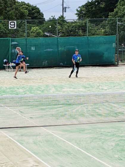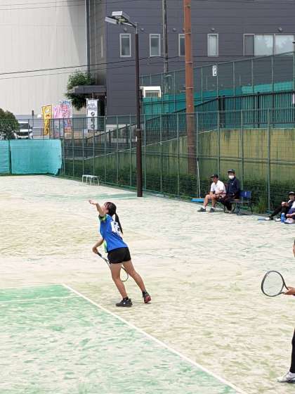 女子テニス団体戦です 。初戦で第三中に勝利し、 準決勝進出です。