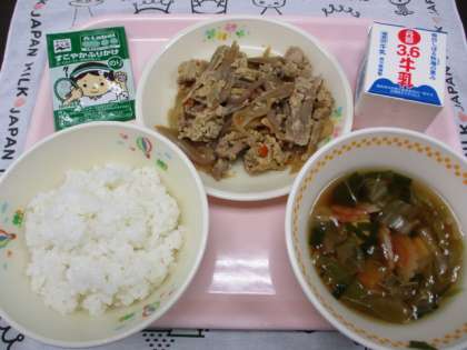 10月25日(水) 今日の給食 公開日 2023/10/25 更新日 2023/10/25 今日の給食 今日のメニューは、 ・豚肉の柳川煮 ・豆腐となるとのすまし汁 ・のりのふりかけ ・ご飯 ・牛乳 です。 いいね(0)