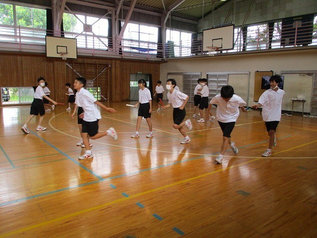 リレー バトンパスの練習をしています