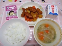 今日のメニューは、・豚キムチ・シーフードスープ・甘夏ゼリー・ご飯・牛乳です。...