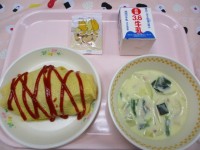 今日のメニューは、・オムライス(ケチャップライス、卵シート)・白菜のクリームスー...
